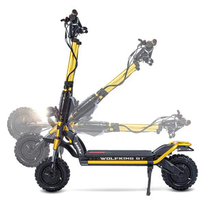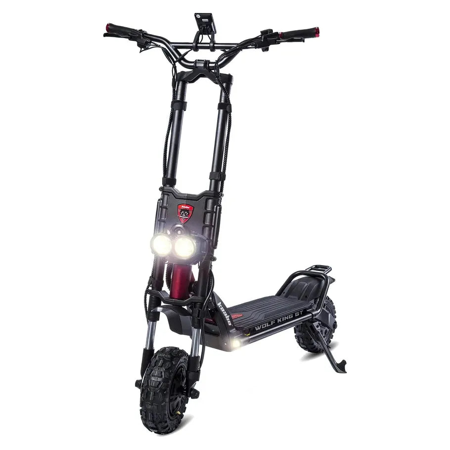 The Kaabo Wolf King GT Pro boasts some impressive motocross bike features. At the same time, it is much lighter and more convenient, so you can keep it at home. It’s a perfect choice if you are seeking high speeds and premium features. Are you ready to ride faster and longer on a difficult terrain? Try Kaabo Wolf King GT Pro!